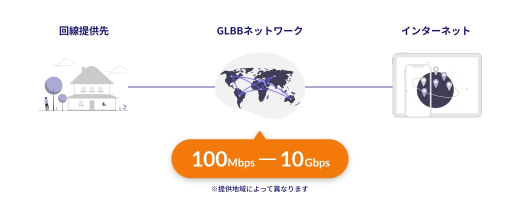 お客様宅内からインターネット接続までの経路を専有し、高品質で安定したインターネット接続を提供します。